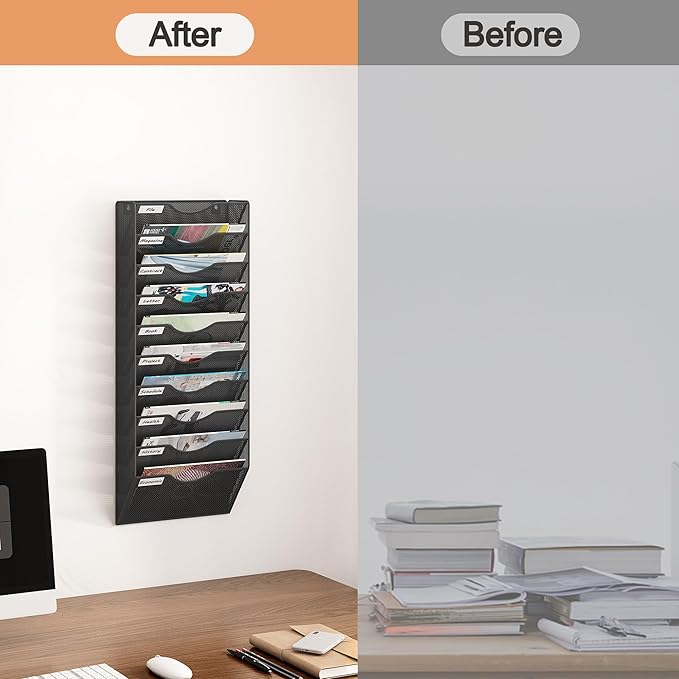 - Durable: The Mail organizer wall mounted is made of durable metal with a coating that extends the life of the wall mount. The metal mesh construction reduces weight while keeping air circulating through the wall paper organizer, so you don't have to worry about mold and mildew on your documents or papers