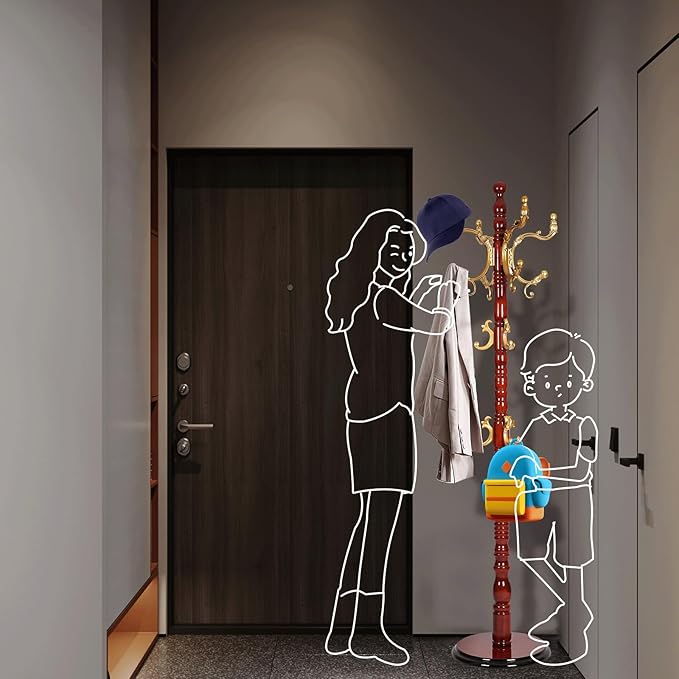 - 【HIGH-GRADE COAT RACKS】This Wooden coat rack is designed in stylish and simple style, made ofenvironmentally friendly high-quality birch material, the bright polished paint and natural wooden make it so generous.