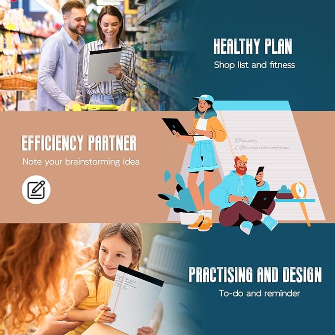 - 【Double-Sided Printing】The 8.5" x 11" writing pad is designed with double-sided printing, providing you with twice the writing space without wasting any paper. Each pad contains 30 sheets with 60 pages, Valuable note pad paper gives you plenty of space to record your ideas/ to-do. Make the most of these legal pads to note brainstorming idea/ homework practicing/ shopping list, etc.