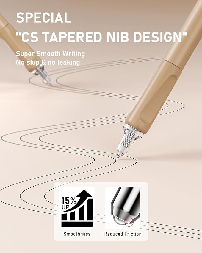 - Smooth & Versatile Nibs: Enjoy buttery-smooth writing with premium cute pens that glide effortlessly. Includes ST, bullet, CS tapered nibs, and a 4mm highlighter tip—ideal for notes, journaling, drawing, and highlighting. Built-in spring tips ensure steady ink flow and crisp lines for a smooth, stress-free writing experience