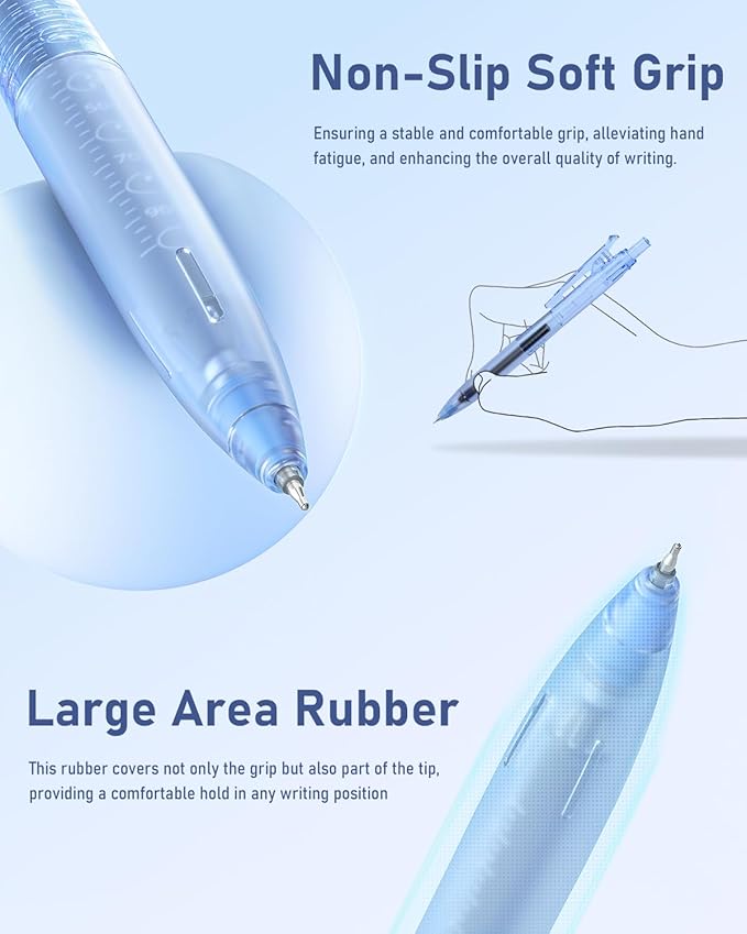 - Comfortable Rubber Grip: These gel pens set with soft ergonomic rubber grip is comfortable and non-slip, it easy to hold and reduces hand fatigue and improves writing control, especially during extended writing sessions, giving you good writing and drawing experience