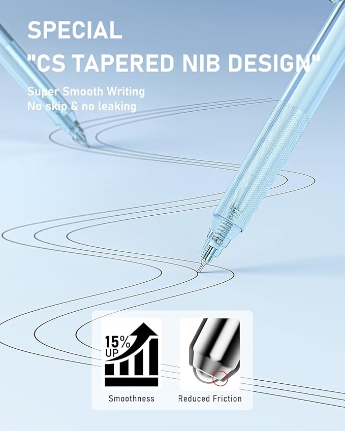 - Smooth & Versatile Nibs: Enjoy buttery-smooth writing with premium cute pens that glide effortlessly. Includes ST, bullet, CS tapered nibs, and a 4mm highlighter tip—ideal for notes, journaling, drawing, and highlighting. Built-in spring tips ensure steady ink flow and crisp lines for a smooth, stress-free writing experience