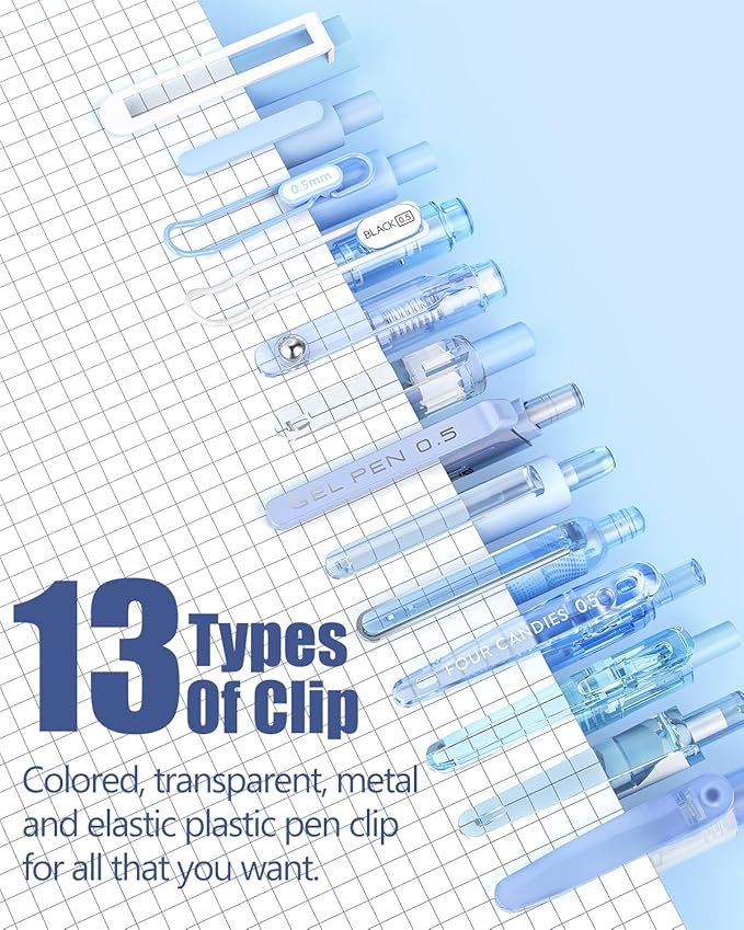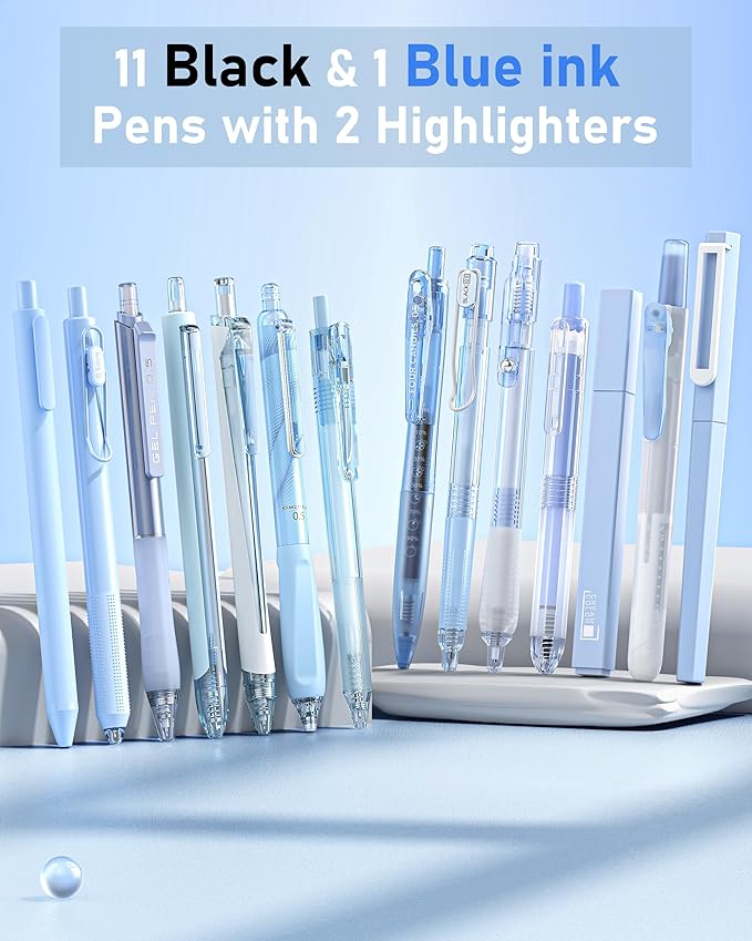 - Macaron Pastel Pens & Highlighters Set:This cute blue pens set includes 11 black ink pens, 1 blue ink pen, and 2 pastel highlighters in adorable macaron colors. With different pen grips and assorted styles, it’s perfect for nurses, students, and office workers who want comfortable, stylish writing tools for daily notes and journaling