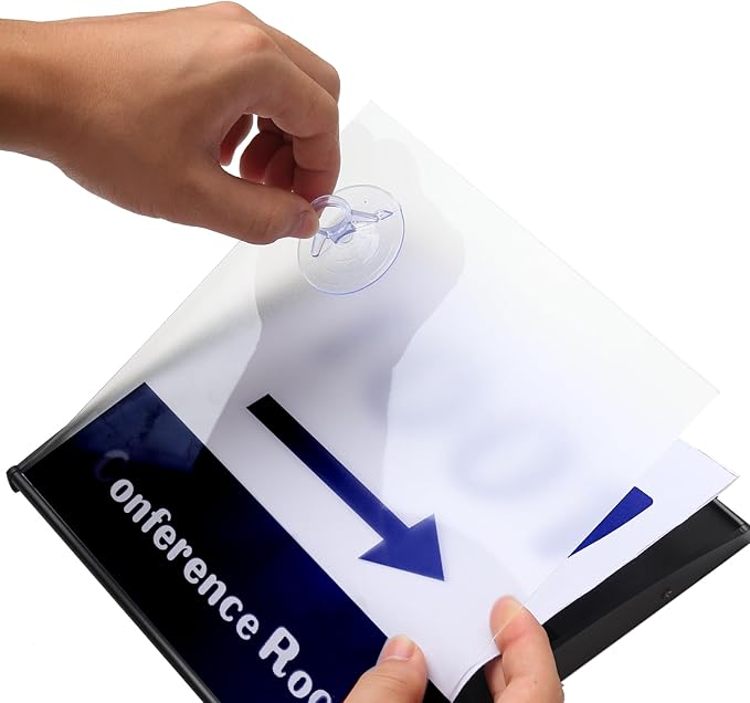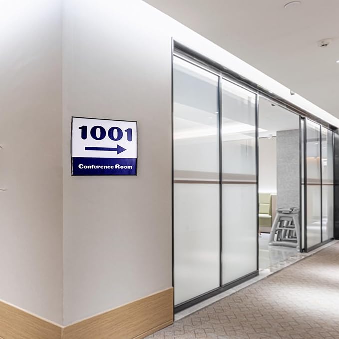 - Sized for 8" x 8" signs, Great for an Office Door Sign, curved aluminum with protective non-glare lens and vacuum holder to an easy sign graphic replacement. office door sign can be changed without removing it from the wall