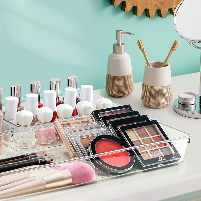 Criusia Drawer Organizer Set, Acrylic Non Slip Non Cracking Kitchen Drawer Storage Tray Large Size Divider, Multifunctional Storage for Cosmetics, Bathroom, Tools, Kitchen and Office (8 PACK)