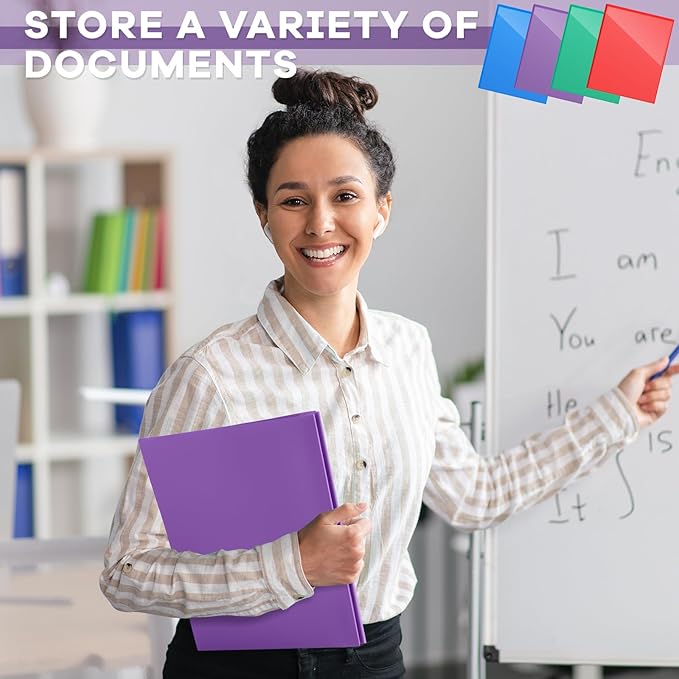 - Practical and Useful: with a clear front pocket, you can put your catalog, tables, favorite reports, presentations and more for clear display; Each plastic folder has 2 internal pockets to help organize and store your letter sized paper and documents; There are also 3 prongs to secure your 3-hole loose leaf paper in case it falls, and the card slot can hold your ID card or business card, practical for your daily work