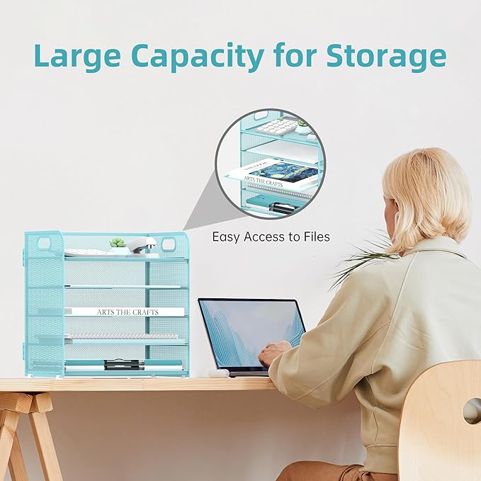 - [Handle Design] The handle design makes the paper tray organizer easy to move. These blue desk organizer are suitable for women, students, office clerks, teachers, and teens, offering both functionality and aesthetic pleasure.