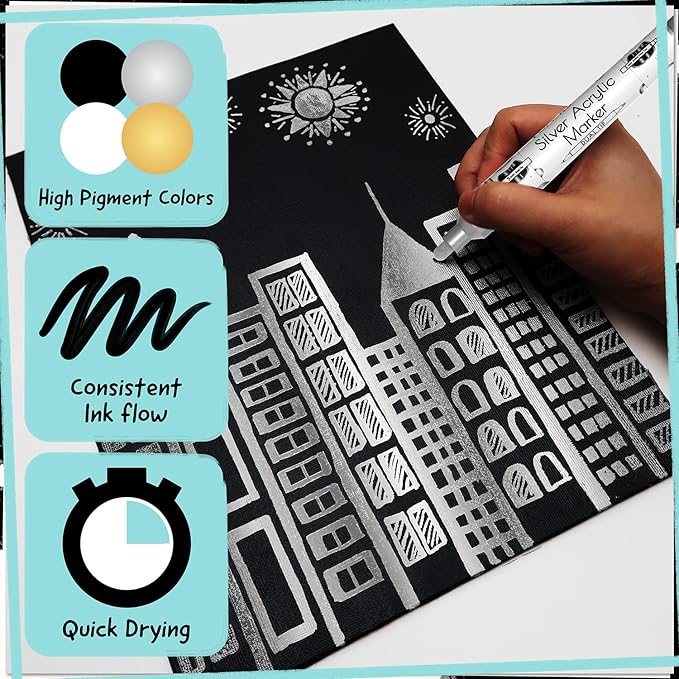 - Acrylic Markers - Highly pigmented, Quick to dry & used as paint markers for canvas, paint pens for wood, or as glass paint markers, rock painting pens, on wine glasses & ceramic paint pen (dishwasher safe ink)