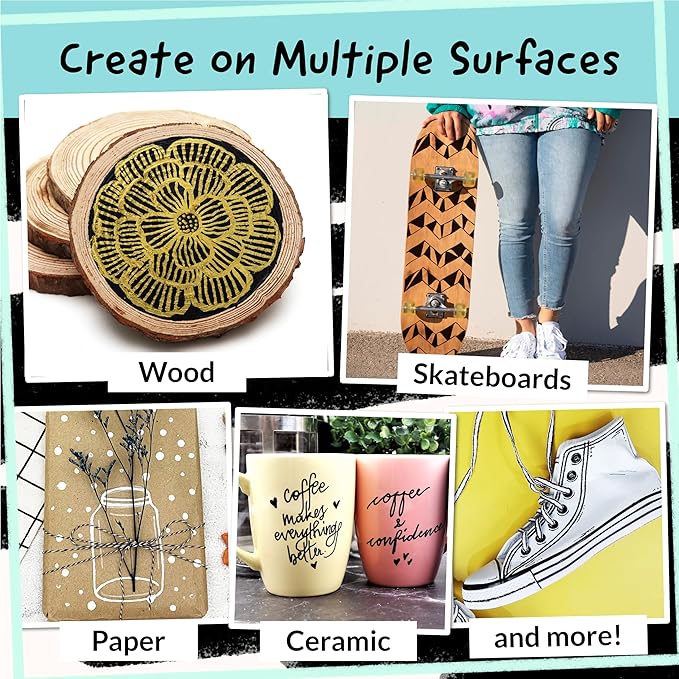 - Multiple Use - Get creative with DIY painting & crafts using these acrylic paint pens for canvas, fabric paint pens for clothes, metal, porcelain, plastic, stones, polymer clay, as paint markers for wood, paint markers for metal