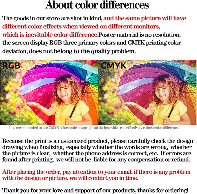 - Important --- In order to ensure the print quality of the banner, please try to provide a clear enough picture!!! The recommended color mode for the image is CMYK print color.