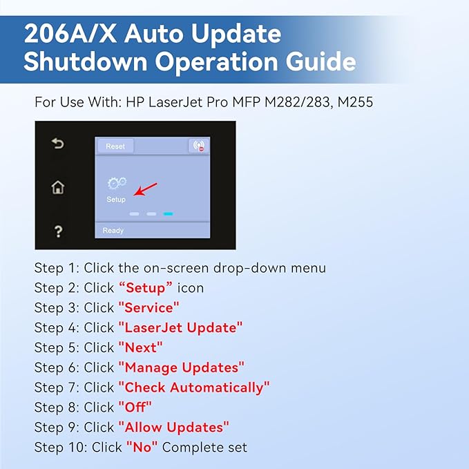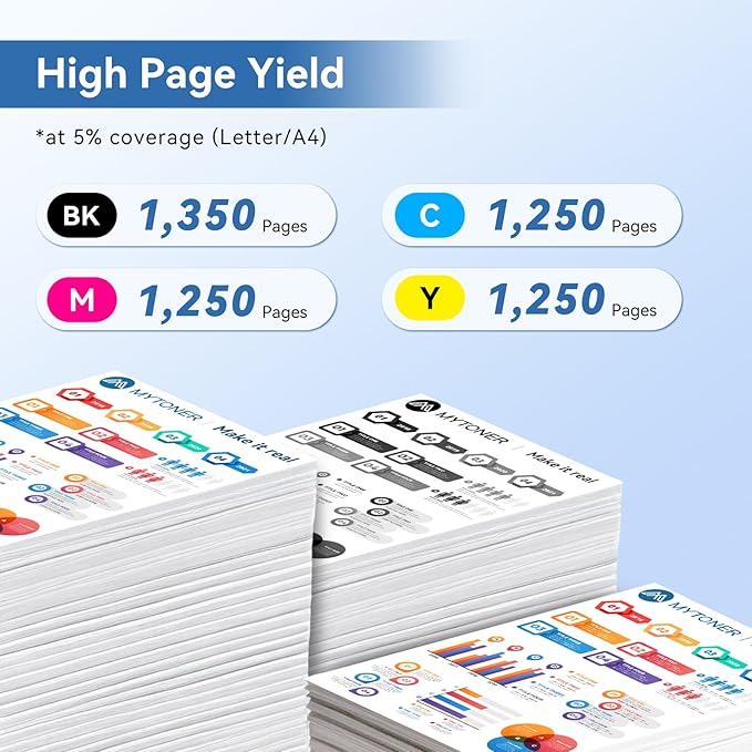 - Easy Installation: 206A 206X Toner Cartridges 4 Pack come with chips, which are designed for easy installation and better replacement compatible with M255, MFP M282 and MFP M283 series printers, eliminating the need to transfer chips from old cartridges