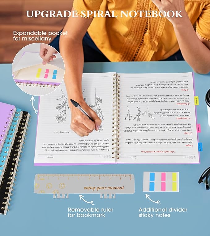 - 【A4 Hardcover Spiral Journal Notebook】 Large a4 size 8.5"x11" notebook, standard 7mm space classic college ruled journals. The professional sturdy water-resistant plastic hard cover will protect your notebooks to last for years, which has oil-resistant and anti-bending properties, effectively protecting the internal paper of the journal and provides a comfortable writing surface.