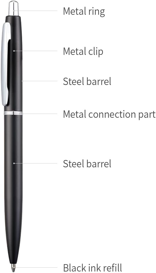 - Writing smooth, 1.0 mm medium metal tip; easy-drying black ink; NO smear, skipping or smudging