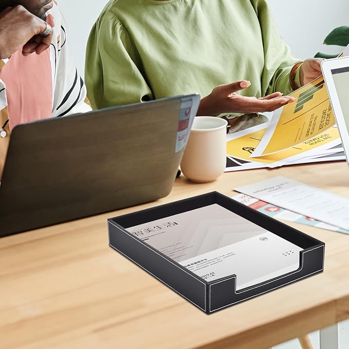 Leather 1-Layer Letter Tray Stackable File Document Tray,A4 Paper Case Rack Desk Office Supplies Organizer Holders,Desktop Organization, Pen Mail Magazine Storage Box(Black)