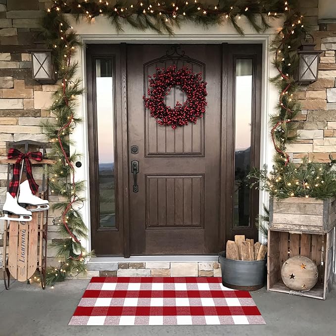 - ✅【SUPER POPULAR IN PINTEREST】:Decorate your home with our Standard size 35.4 x 59 inches buffalo plaid outdoor rug, put it on your front porch with a WELCOME doormat on top. Very cute layering! the latest and most trendy farmhouse decor!