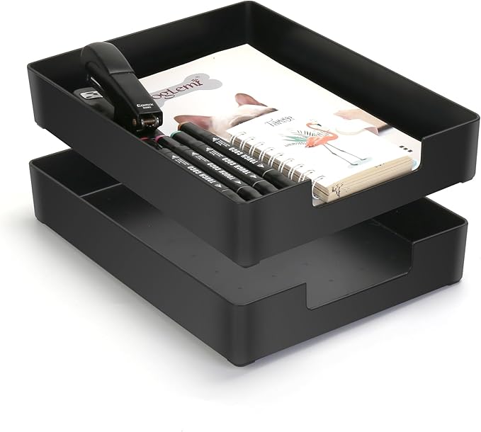 - Simple Classic Stackable A4 Letter Size Tray- Our black desk organizer are simple designed as you can see, a big basket without dividers inside, conveniently stack ,each modern stackable letter tray to free up space on your desk in your home,office,or classroom to keep your workspace neat and tidy,offering valuable space-saving convenience.