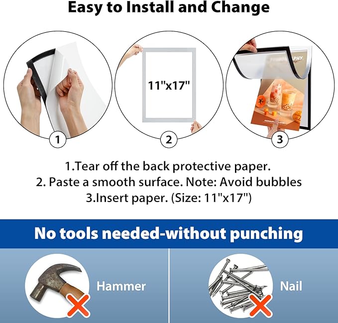 - ✔Easy to Use & Widely Used - Tear off the self-adhesive backing paper, stick it on a sturdy and smooth surface, and insert the paper!It's that simple!It is the preferred display frame for offices, homes, stores, restaurants, cafes, schools, banks, supermarkets, hospitals, exhibitions, and other places.