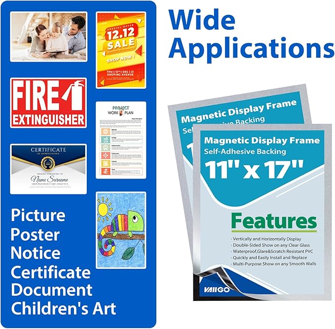 - ✔Magnetic Sign Holder - Can hold 11x17 inch pictures, documents, signs, drawings, certificates, diplomas, flyers, notices, crafts, children's art and more.