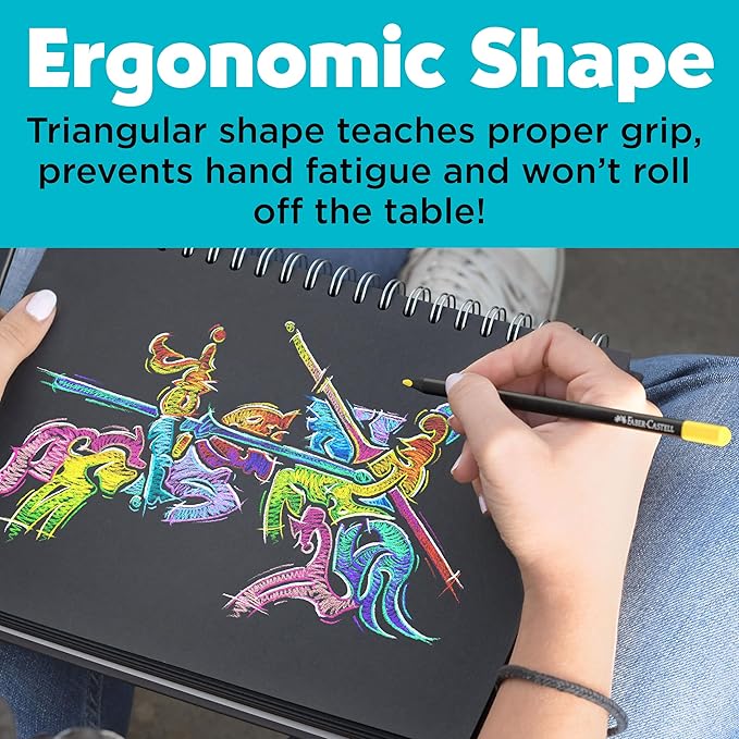 - ERGONOMIC COLORING PENCILS: Faber-Castell colored pencils are pre-sharpened and feature a triangular shape, ensuring the correct grip position with optimum comfort and preventing hand fatigue when drawing and coloring. Just add creativity to bring your adult coloring books, drawings and sketches to life with brilliant color
