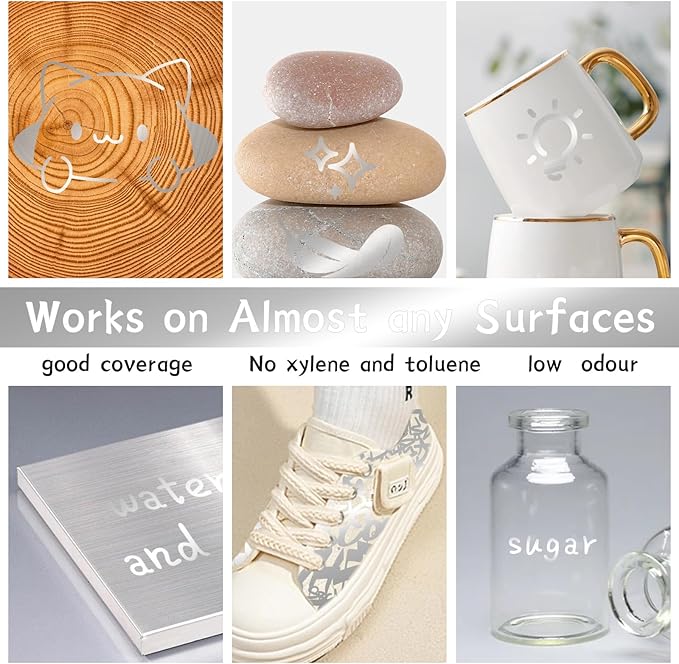 - Extensive Use: Paint pens mark steel and mark objects such as tires, bolts, metal pipes, bumper panels and more. Not just metal, Silver permanent markers can be used on rocks,wood, ceramic, canvas, tires, rubber, glass and plastic surfaces