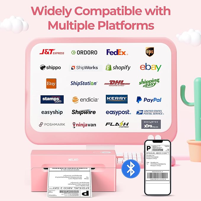 - [Wireless Bluetooth Printing] Effortless Label Printing in 3 Simple Steps-Connect, design, print. This shipping label printer connect seamlessly via the "NELKO" app—works with iOS 13+, Android, Windows 7+, and Mac devices with M1/M2 chips. Enjoy wireless printing across systems, with simple app setup that gets you started in minutes