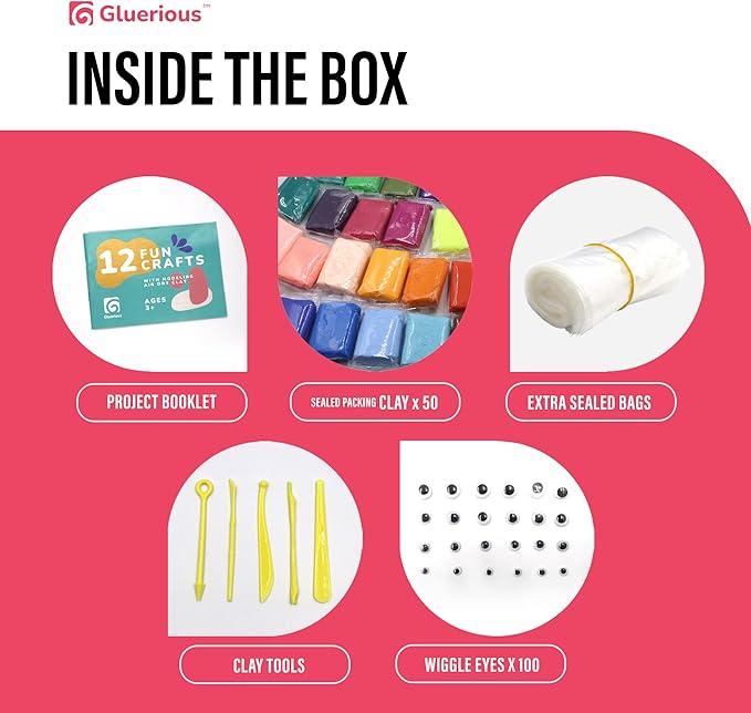 - Included Components : Air Dry Clay (50 vibrant colors)