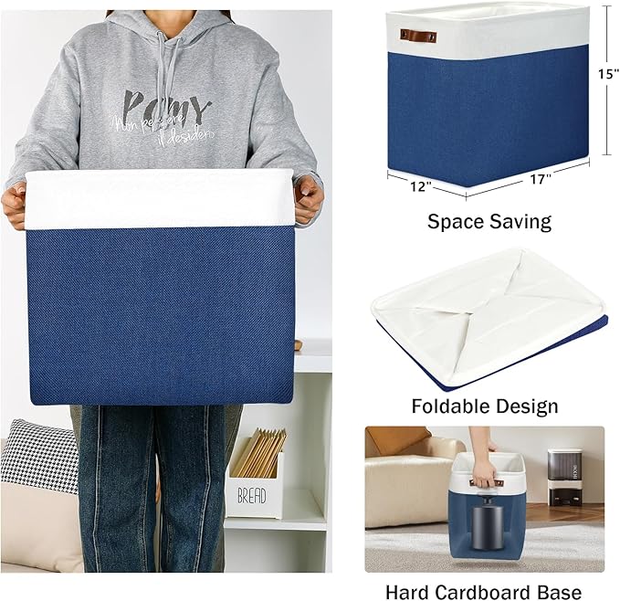 - 【Unique Design & Modern & Decorative】Set of 3 large storage baskets, dimensions(each): 17(L) x 12(W) x 15(H) inches. Collapsible storage baskets bring you organizing convenience and a sweet home. Great for socks, underwear, books, magazines, toys, baby clothes, pet products, wipes, towels, decorations, office supplies, DVDs, and gifts. The fabric baskets with neutral colors can match a lot of home styles - keeping your home nice and tidy.