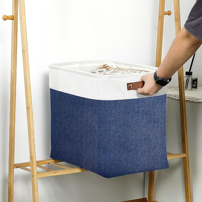 DULLEMELO 51L Large Baskets for Storage, Large Rectangular Baskets for Shelves [3 Pack], Blanket Basket Dog Toy Basket for Organizing Closet, Nursery, Clothes,Toys (White&Blue)