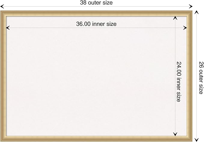 - DIMENSIONS: The overall size of this framed cork board measures 38 in. x 26 in., including the frame. Its functional cork board area measures 36 in. x 24 in.