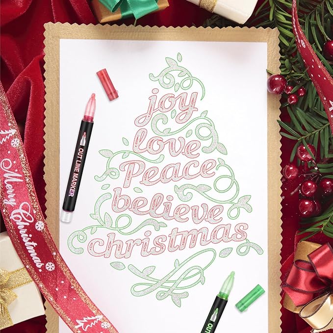- Versatile Art Supplies: With medium fiber fine tips that provide consistent lines, our outline marker is perfect for calligraphy, envelopes, greeting cards, posters, scrapbooking, and journaling. The glittering silver and striking outline make your art pop on wood signs, rocks, and other craft projects. Get creative with stencils for beautiful patterns.
