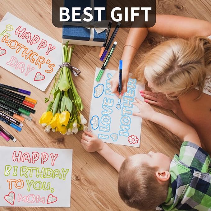 - Perfect Gift for All Ages: Whether you're shopping for kids or adults, our Self-Outline Metallic Markers are ideal. They make great Christmas stocking stuffers for kids, unique birthday gifts for 8-11-year-olds, and creative tools for adults' journals. Rekindle the '80s paint pen memories with this metallic marker set.