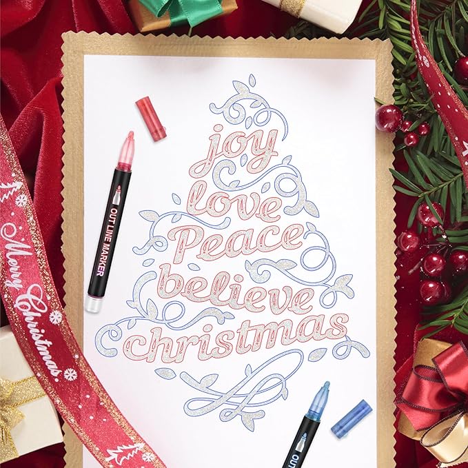 - 💌 Versatile Art Supplies: With 2-3 mm medium tips that provide consistent lines, this outline pen is perfect for hand lettering, calligraphy, envelopes, greeting cards, posters, scrapbooking, journaling, and kids craft supplies. The shimmer markers double line outline effect makes your art pop on journals, paper, wood signs, rocks, and other arts and crafts projects. Get creative with stencils for beautiful patterns!