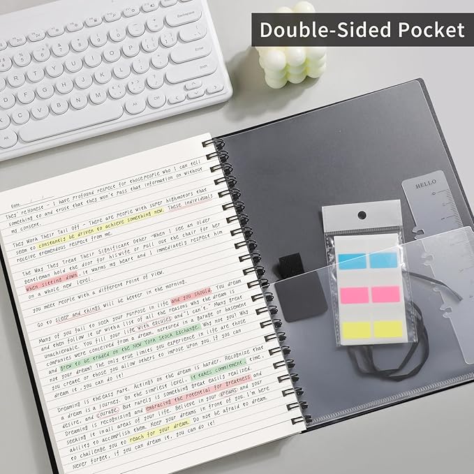 - 300 Pages Spiral Notebook: With 150 sheets/300 pages of classic 7mm college ruled paper in an 8.5"x11" standard letter size, this notebook provides ample writing space. With 18 pcs divider sticky notes for better classify and make you more professional