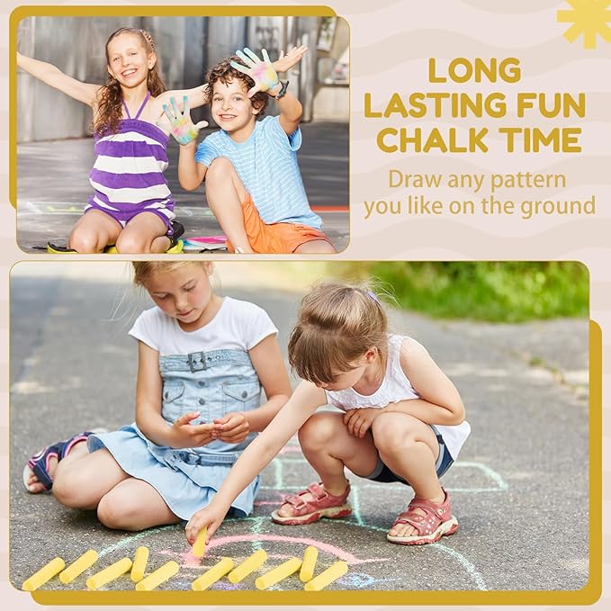 Fulmoon 40 Pcs Jumbo Sidewalk Chalk for Kids Outdoor Art Non Toxic Large Washable Street Chalk for Adults Drawing Painting Classroom(Yellow,Round Style)