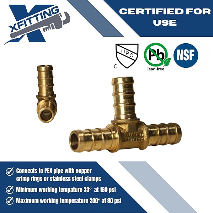 10 Pieces XFITTING 3/8" x 3/8" x 3/8" Pex Tee, Pex B Crimp Version 25-5-7=10X (10 Packs)