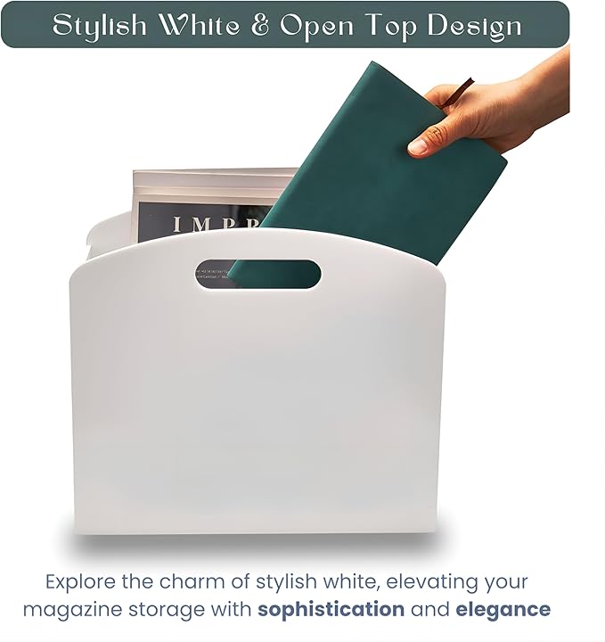 - STYLISH & MODERN - Explore the charm of stylish white, elevating your magazine storage with sophistication and elegance.This magazine holder open design also provides easy access to the items you have stored.
