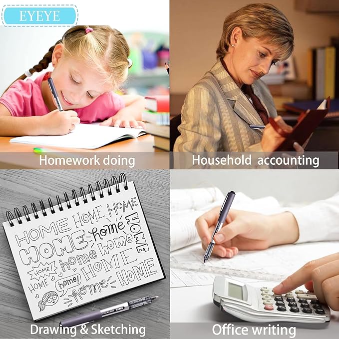 - Smooth Writing: Eyeye rollerball pens black writes smoothly, gliding effortlessly across the page effortlessly, delivering super smooth precision for crisp lines and detailed writing. Liquid ink pens fine point smooth writing pens for journaling, taking notes, general writing, signatures and other uses anything on paper you have to write.