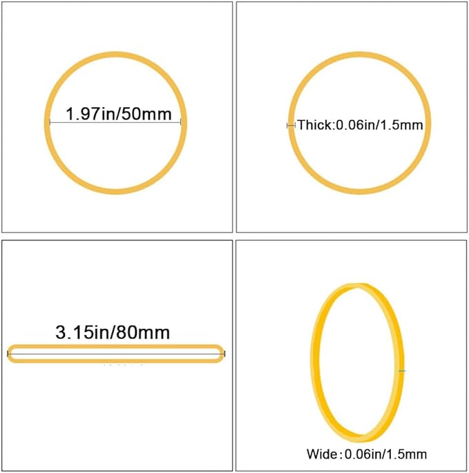 - Size:Each Rubber Band is about 80mm/3.15" in diameter internal diameter is about 50mm/1.97" in,about 1.4mm/0.056" in thickness,about 1.4m/0.056" in width.