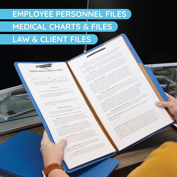 - Organize legal-size files efficiently with 6 fasteners, one on each inside covers and one on each side of the 2 dividers