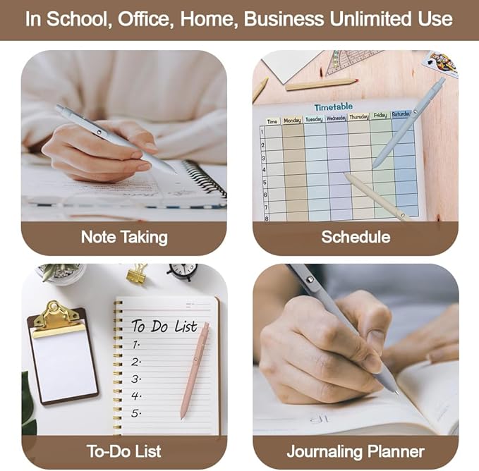 - Fashion & Practical Design : You will receive a set of 5 Morandi gel pens with a modern minimalist design. They are suitable for daily use and replacement. These retractable pens are perfect for aesthetic school supplies, office supplies, journaling, note-taking, and planning.