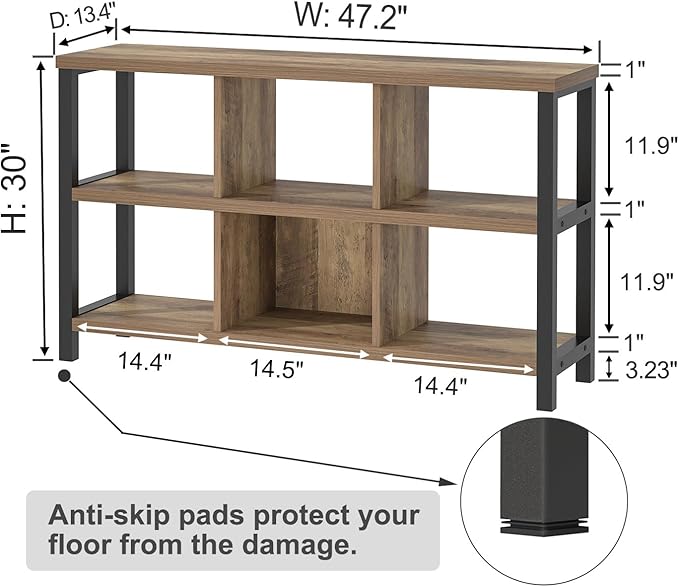 FOLUBAN 6 Cube Storage Organizer with Shelf, Industrial Horizontal Bookshelf, Low Cubby Bookcase for Living Room Bedroom, 47 Inch Oak