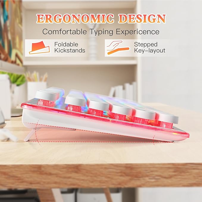 - ❤ Vintage Style ❤ Unique round keycaps with a floating-key design in profile bring you a nostalgic feeling with the eye-catching retro aesthetic
