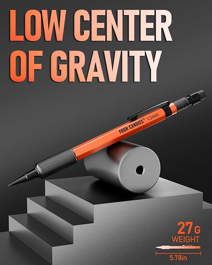 Four Candies 1.3mm Mechanical Pencil Set with 24 Lead Refills, Metal Weatherproof Heavy Duty Outdoor Carpenter Pencil, Eraser, 6 Eraser Refills for Architect Drafting Woodworking Marking with Case
