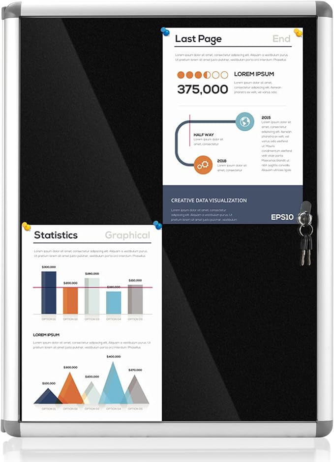 - HIGH-QUALITY MATERIAL: It is made of black felt pin board, durable aluminum construction, shatter-resistant acrylic door and ABS rounded corners