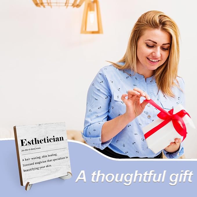 Esthetician Definition Wood Sign Desk Decor Rustic Esthetician Supplies Office Cubicle Decor Plaque with Wooden Stand Farmhouse Beauty Salon Desk Accessories for Home Table Shelf Centerpieces