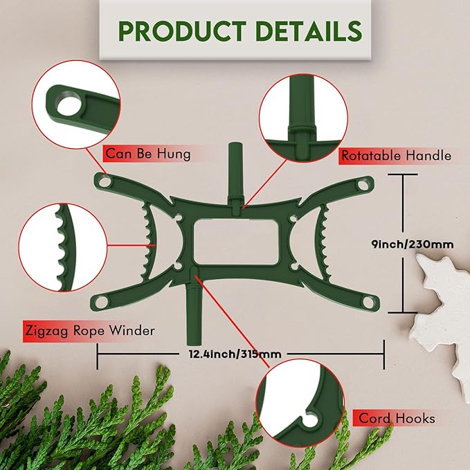 - Secure and Safe: The rotating handle lights organizer features serrated edges on both sides to ensure a snug fit for your lights, preventing them from slipping off. The thoughtful cord hook design securely holds the power cord in place, ensuring a tight and secure twist. The corners of this product have been rounded to avoid scratching your skin while using it.