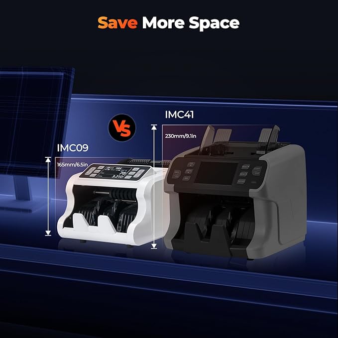 - [Fast and Smooth] The IMC09 cash counter machine has a counting speed of 1000 bills per minute. Upgraded roller processing for old bills provides an advantage for counting creased bills. The currency counter can count up to 200 bills in a single run