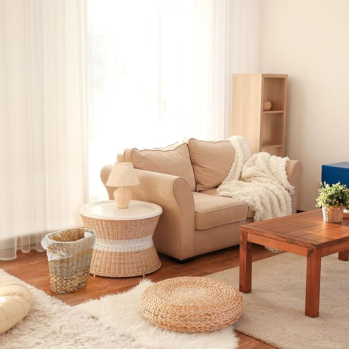 - Quality Material: this wicker trash basket is made from robust and safe materials including paper rope, seagrass, water hyacinth, and metal, ensuring durability and longevity, also easy to clean by the damp cloth or rinsing with water, not suitable to use corrosive substances for cleaning; The included trash bags are made from sturdy plastic, useful and functional