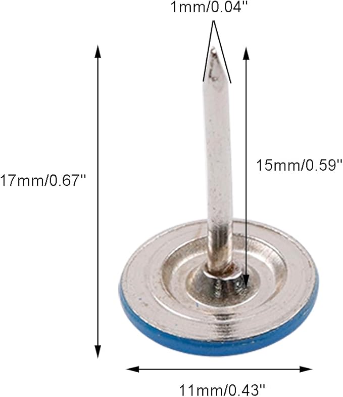 - PACKAGE CONTENT: 100Pcs blue flat head upholstery tacks, enough quantity to meet your daily needs. Total Size:11mm*17mm/ 0.43" * 0.67"(Dia.xH), elegant for furniture decoration