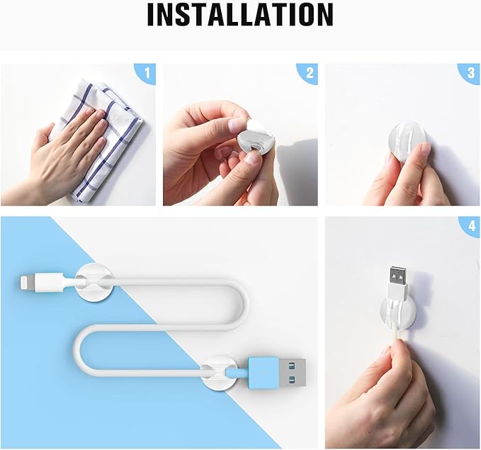 - Keep tidy: Organizes the wires and cable on the desk, keeping the desk neat. Perfect cord holder for desk. Our cable clip is transparent that almost invisible and blend in any decoration style